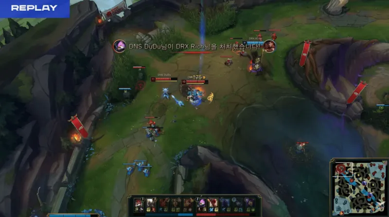 第三分钟:DRX辅助游走上路配合队友发起攻势,撤退途中击杀赶来支援的瑞兹,顺利拿下一血
